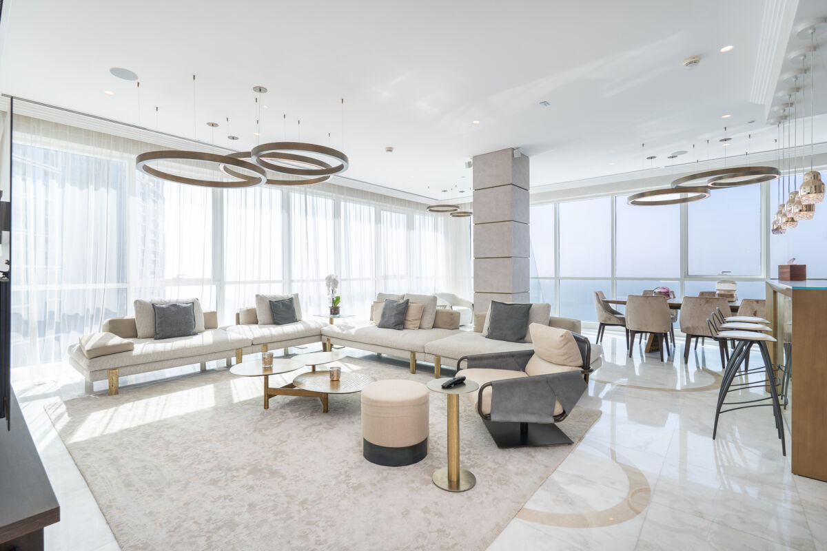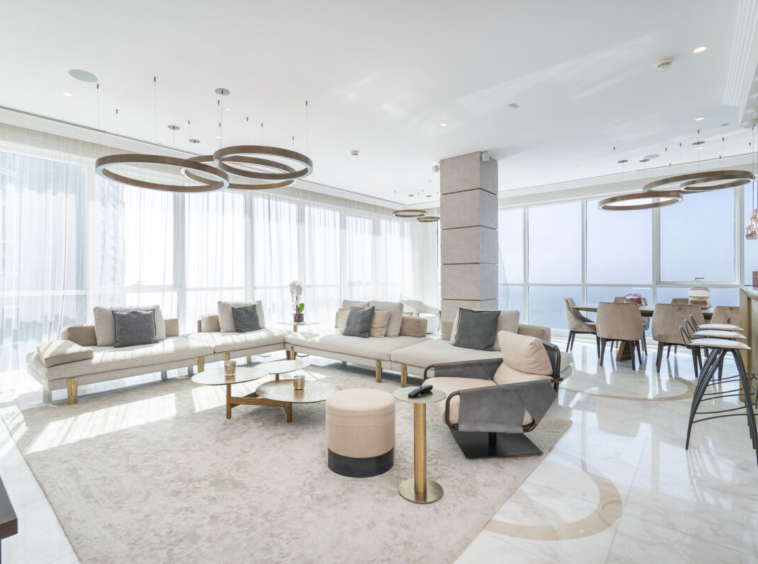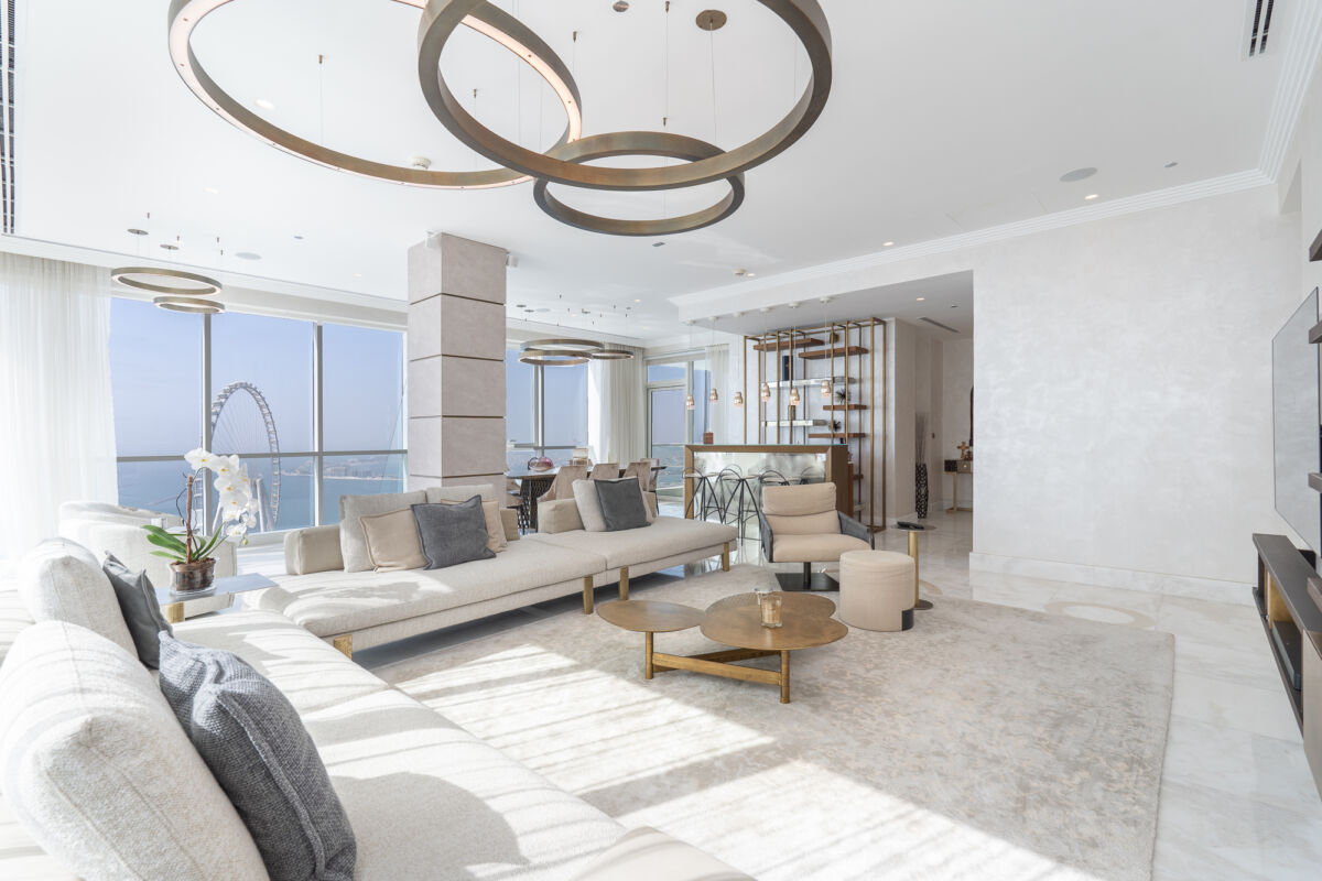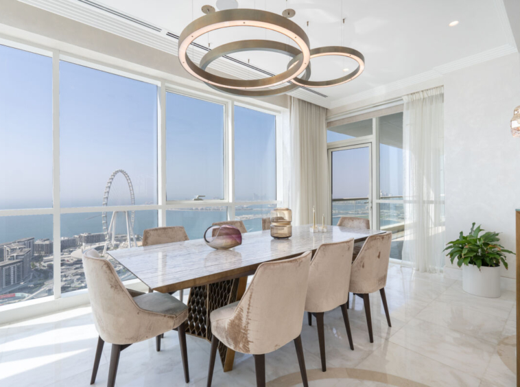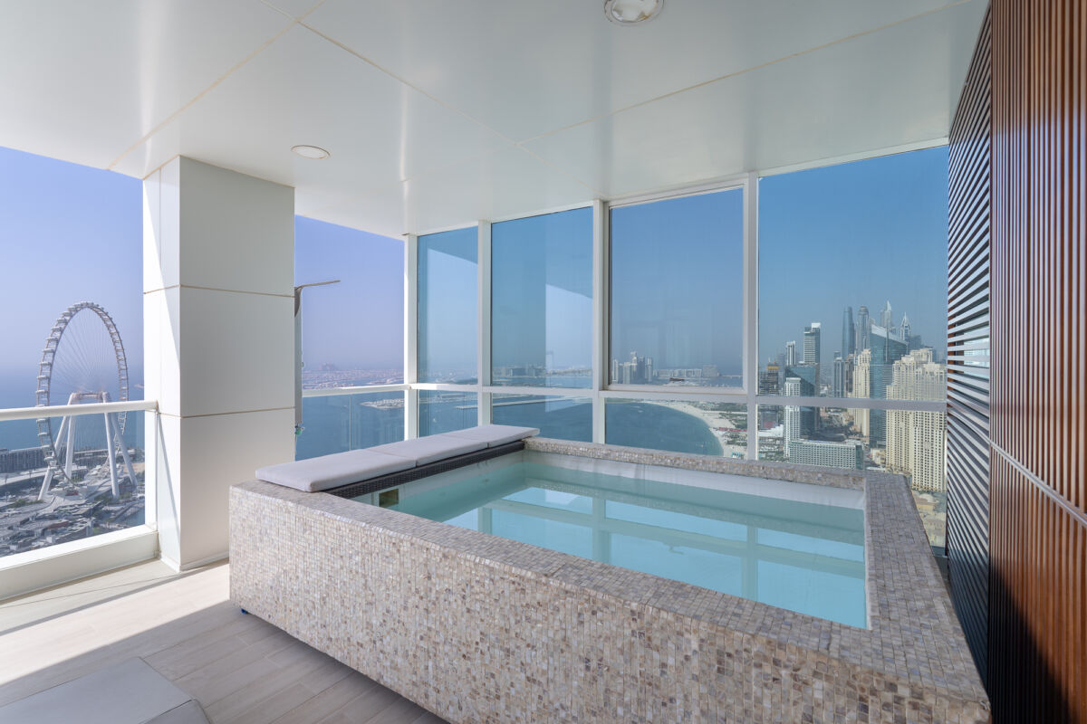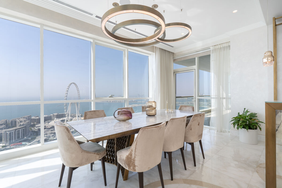 Presentiamo un attico straordinario che occupa un intero piano all’interno di Al Bateen Residences, nel cuore di Jumeirah Beach Residence.Completamente ristrutturato secondo standard impeccabili, offre cinque camere da letto con bagno en-suite e vista mare mozzafiato. Gli interni, firmati da Massimo Castagna e Isabella Genovese, esprimono un’eleganza contemporanea senza compromessi. La cucina open space è dotata di elettrodomestici premium Gaggenau, perfetta per intrattenere con stile.Ampie vetrate, jacuzzi privata in terrazza, sala cinema e quattro posti auto completano questa residenza esclusiva. I residenti godono inoltre di accesso alla spiaggia privata, piscina, spa, palestra e sicurezza 24/7.